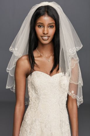 Fingertip Length Two-Tier Veil with Scallop Edge