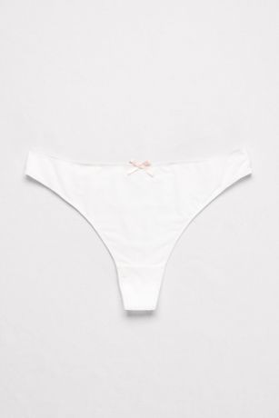 This satiny thong is backed with lace and finished with a tiny bow.