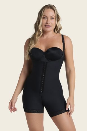 Clip yourself into this incredible body shaper! This firm tummy control body shaper is made with our signature PowerSlim firm compression fabric to comfortably but effectively sculpt your body from your back and waist down to your tummy and thighs. The boyshort bottom ends in our trademark SmartLace along with an anti-slip grip lining for no roll-up. The bottom features our MagicUp technology: lighter fabric and special bands for a butt-lifting effect. It has an open gusset for easy wear.