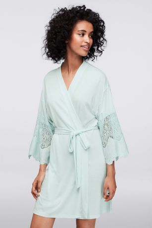 Reach for this silky jersey robe when you want a bit more glamour in your morning. The textured, lace-trimmed sleeves elevate even the simplest getting-ready routines.