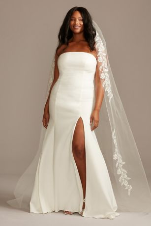 Budding floral blooms and leafy vines trim the edges of this beautiful chapel-length tulle veil.