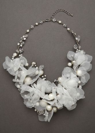 Dress up your neck with this amazing floral bouquet necklace with pearl, crystal and mesh applique.