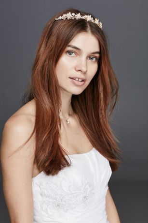 • Shallow tiara features beautiful detailed floral motif-embellished with pearls and crystals