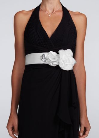 - Sash measures 70" in length and 2" wide. Floral embellishment measures 6.5" in length.