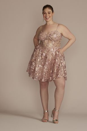 For homecoming queens looking to make a memorable entrance, this classic A-line is the showstopper you're after. Delicate details like a sweetheart neckline and floral embroidery give this dress a darling appearance, while the peek-a-boo illusion corset bodice adds an edge. Plus, pockets for storing your night-out essentials are a must-have!