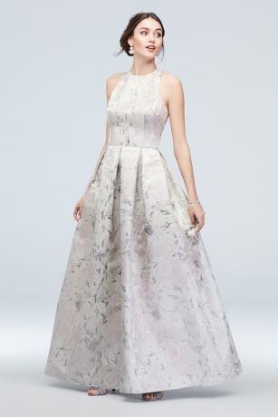 Floral Jacquard Sleeveless Ball Gown with Pockets