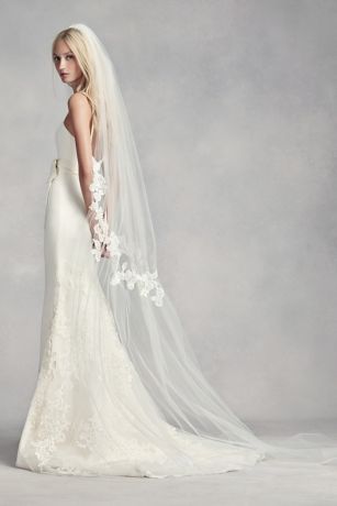 Delicately designed to create maximum appeal. This lace cinched White by Vera Wang veil will transform your bridal look.