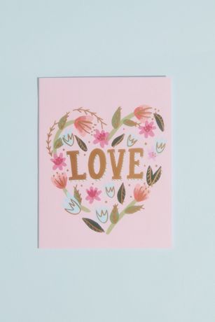 Spread the love and warm sentiments with this beautiful "Love" message, surrounded by a heart of flower blooms. Featuring gold foil pressed on natural white cover stock.