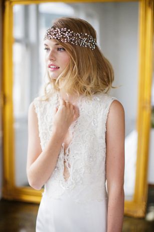 Featuring a floral marquise crystal design accented by freshwater pearls, this halo looks equally lovely as a headband or sash.