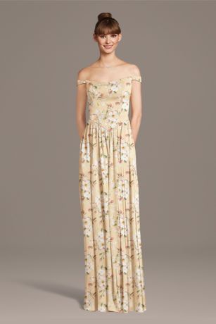 Floral Matte Satin Off-the-Shoulder Basque Dress