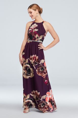 This floral chiffon halter dress makes a beautiful first impression, and is full of second-glance details like soft pleats, a beaded belt, and front pockets perfect for holding big-event essentials. Please note: the placement of the print on each dress will vary; no two will be exactly alike.