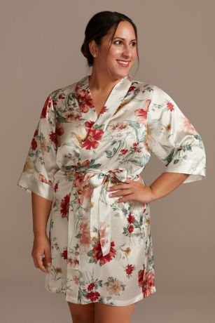 Get ready for your big event in style wearing this three-quarter sleeve floral satin robe.