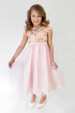 She'll match the peonies in this colorful tulle flower girl dress with a floral-printed top and sweet pink skirt.