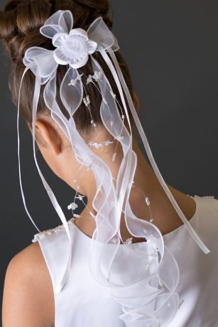 Flowers and ribbons and beads, oh my! This super-sweet comb will add beautiful texture and detail to her communion hairstyle.