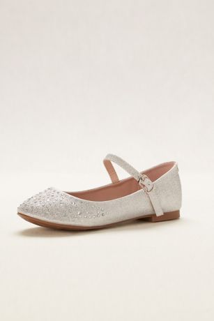 Your flower girl will love these Mary Jane flats illuminated by sparkling crystals.