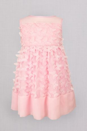 Detailed with an illusion neckline, this crinkle chiffon flower girl dress features fluttering butterfly appliques.