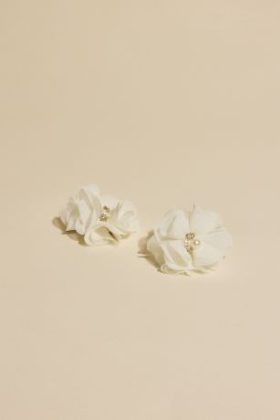 Clip these satin flowers into your tiny attendant's hair, and she'll be ready for aisle duty. Features faux pearls and crystals at the centers.