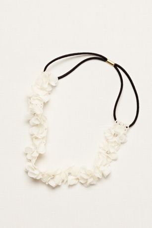 - Stretch headband with soft flowers each adorned with crystal centers.