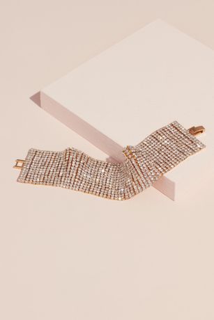 Comprised of rows of gleaming crystals, this fluid bracelet gives the illusion of a cuff bracelet