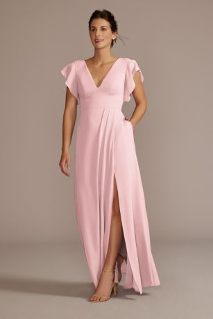 This stunning chiffon bridesmaid dress features delicate flutter sleeves and a flattering V-neckline, perfect for any bridal party. The flowy chiffon fabric drapes beautifully, creating a soft and romantic look. The V-neck adds a touch of elegance, while the flutter sleeves add a fun and feminine touch. This dress is available in a variety of colors to suit any wedding theme or color scheme. Whether you're a bridesmaid or a guest, this dress is sure to make you feel beautiful and confident on the big day.