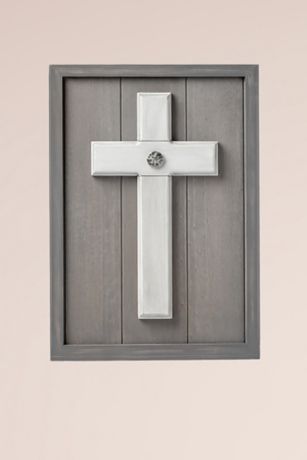 Assembled by the bride and groom during the wedding ceremony to represent their shared faith, the this cross features two wood pieces locked together by a single nail. Framed in washed wood to complement any wedding theme and home decor.