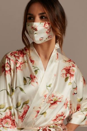 A soft floral print adds romance to this satin face mask, while adjustable ear loops provide a secure fit.