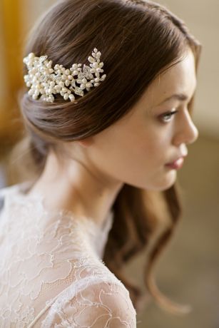 Clustered freshwater pearl vines and filigree crystal leaves are hand-wired to a metal comb for a dramatic and romantic bridal hair accessory.