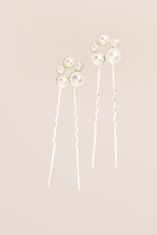 Freshwater pearls form a circular cluster on this modern-yet-traditional set of hairpins.