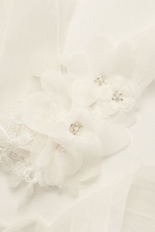- Garza sash with lace appliques and laser-cut three-dimensional beaded floral embellishment.