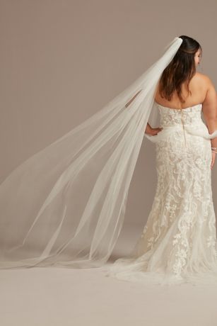 Made from glitter tulle fabric, this cathedral veil dazzles with subtle allover sparkle