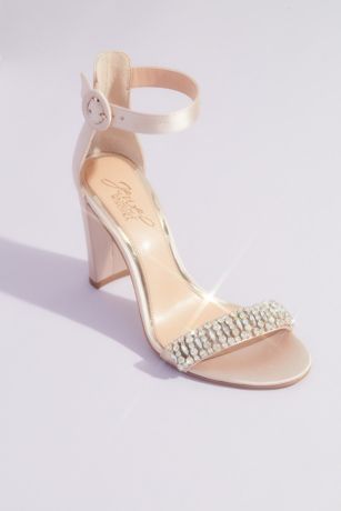 Gem-Encrusted Satin Block Heels with Ankle Strap