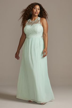 Geometric Neckline Pleated Skirt Lace Gown