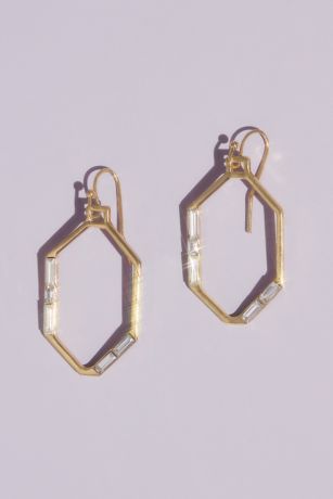For a unique addition to any look, wear these sleek and modern gilded earrings, formed by delicate hexagons and accented with baguette-cut crystals.