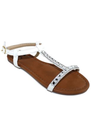 Girls Crystal T-Strap Flat Sandal