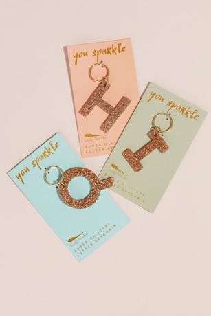 This keychain is the perfect accessory to add a touch of sparkle to any set of keys. The glitter acrylic material catches the light beautifully, making it a fun and stylish addition to any key ring. Whether you're looking for a thoughtful gift for a friend or just want to treat yourself, this initial keychain is sure to bring a smile to anyone's face. Plus, with a wide range of initials available, you can easily find the perfect one for each of your friends. Add a little extra sparkle to your day with this glitter acrylic initial keychain from David's Bridal.