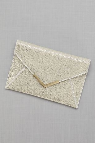 Sparkling with a glittery gold print, this metal-edged envelope clutch is simply stunning.