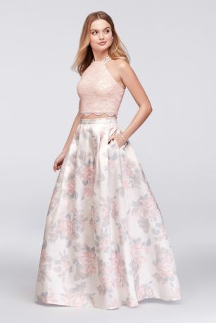 Glitter Lace and Floral Mikado Two-Piece Dress