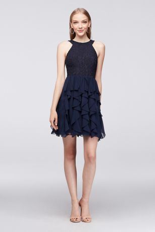 Glitter Lace and Ruffled Chiffon Homecoming Dress