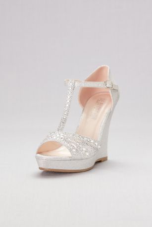 Glitter Platform Wedges with Crystal Embellishment