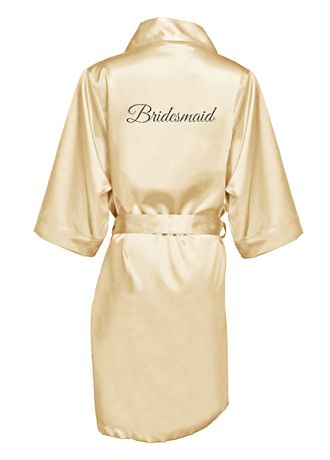 Wrap your bridesmaids in luxury in this gorgeous silky satin robe embellished in fabulous glitter print!  These robes make a great gift for your bridesmaids and also a super cute photo op while getting ready for the wedding!