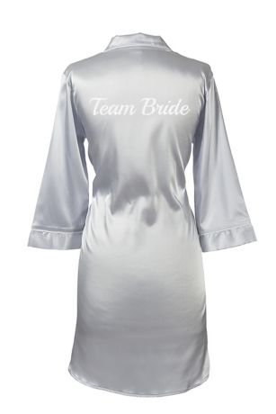 Dress your bridal party in comfort as they prepare for your big day in these Team Bride Satin Night Shirts. The perfect attire features contrast pipping, ultra soft satin material, and "Team Bride" in glitter foil on the back.