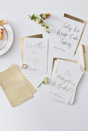 Document the steps leading up to your big day with these gold-foil wedding milestone cards. This pack of 24 includes selections for the bride, the groom, the couple, and a few blank cards.