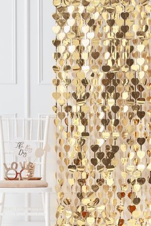 This one-piece gold heart curtain is easy to hang from doorways or walls and will create a stunning photo backdrop for any wedding event.