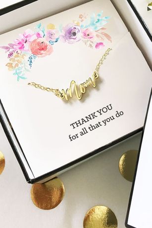 Each Gold Mom Necklace comes with a signature gift box and printed insert reading \"Thanks for all that you do.\"