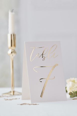 Pop our Gold Table Card Numbers on top of your table centre pieces so guests can easily find their seat! Let guests be directed to their tables by the beautiful gold foil scripted writing which stands out against the white background. A perfect detail for the perfect day. Place these gold foil table numbers with other items from our gold wedding range. including bunting cake toppers and much more!