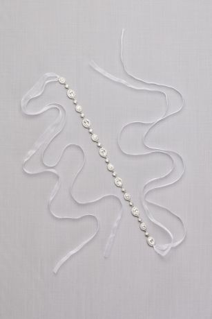 Embellished with brilliant crystals, this slim sash is finished with a double ribbon tie.