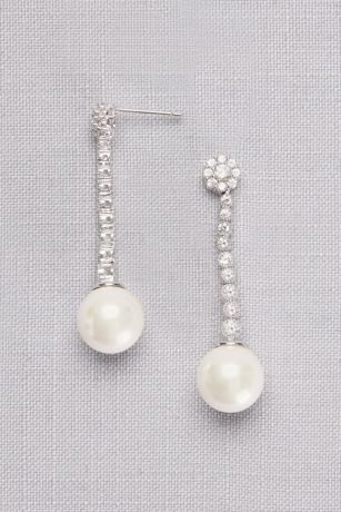 Finished with a single lustrous pearl, these dangly cubic zirconia earrings add a flash of shine to your dress.