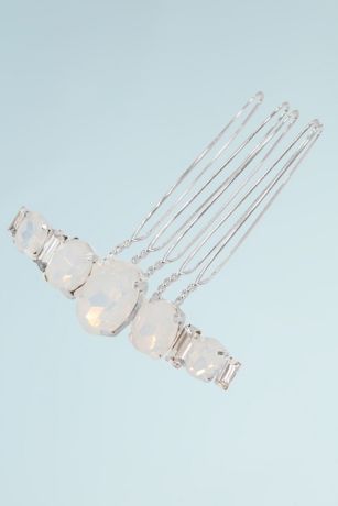 Graduated Genuine Opal and Crystal Baguette Comb