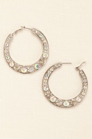 - Graduated hoops embellished with stunning iridescent stones and crystals.