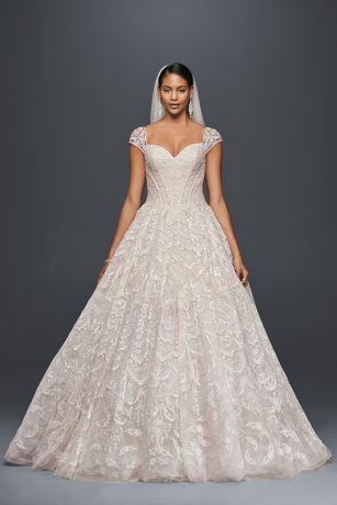 Grand Lace Ball Gown with Beaded Cap Sleeves
